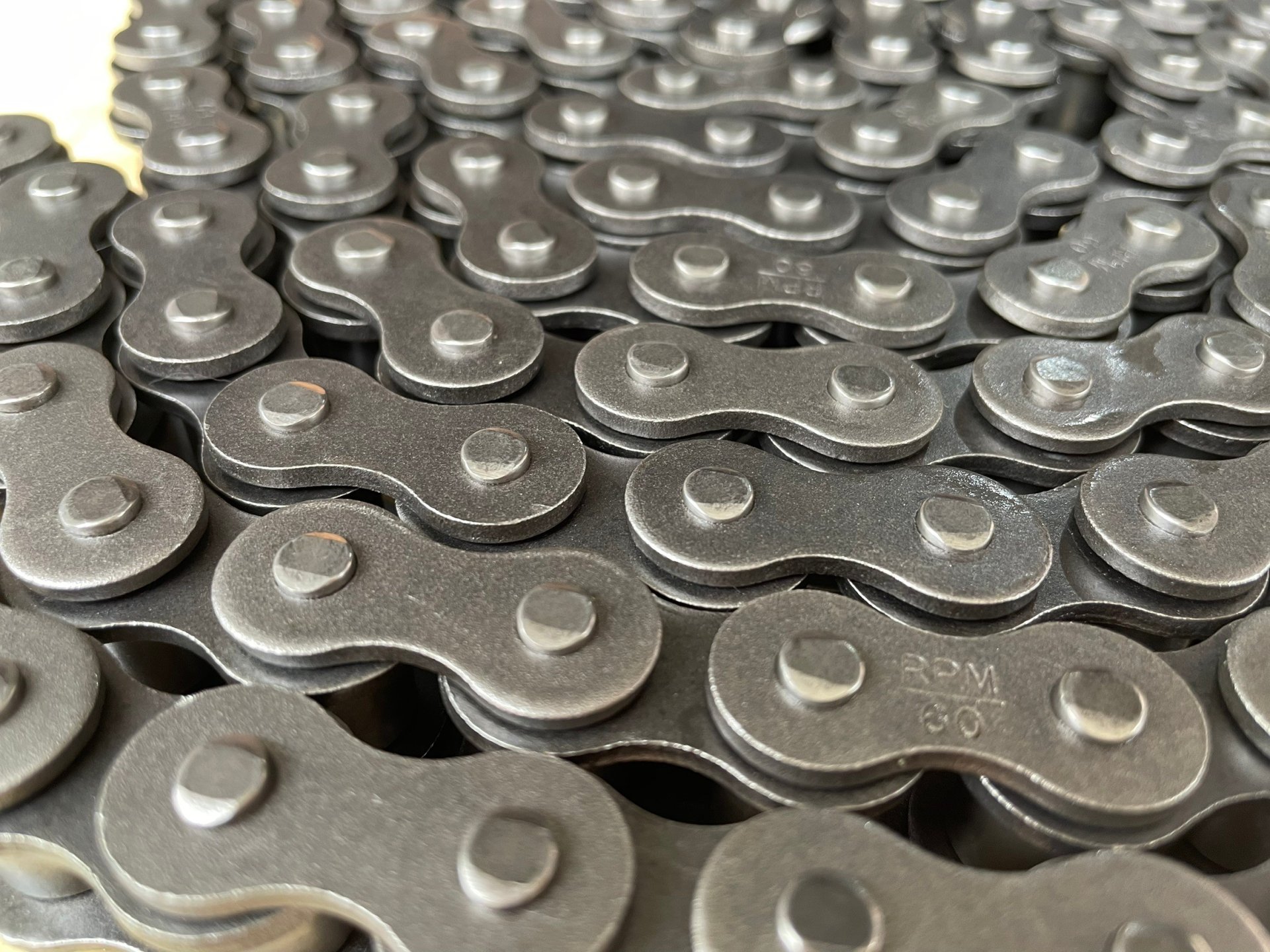 1.3 โซ่ลำเลียงแบบลูกกลิ้ง (Roller Conveyor Chain): มีลูกกลิ้งที่ช่วยให้โซ่เลื่อนได้ง่าย ลดการเสียดทาน มักใช้ในสายการผลิต